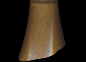 The distinctive brown color of this bottle top is known as Bristol glaze, a decorative style that become popular early in the nineteenth century. Typically, the bottom half of the bottle was dipped in a cream-colored glaze, creating a distinctive two-tone vessel. This type of pottery was introduced in the United Kingdom in 1835 and began to be produced in the United States about fifty years later. Therefore, this artifact would date to the post-colonial occupation of St. Augustine.