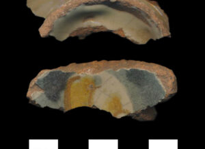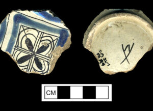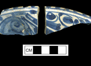 Fig Springs polychrome, originally defined by John Goggin in 1968, is also known as “San Juan Polychrome.” It is one of the earliest American-made majolicas, or tin glazed pottery types. This type belongs to the Mexico City “Fine Ware” majolica category, which came into production around 1540. It does not appear regularly in Florida or Caribbean contexts until after about 1575.