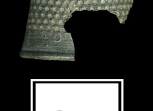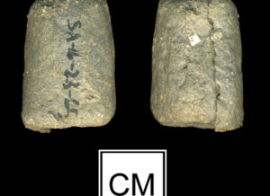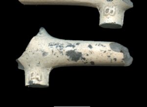 Spanish colonials preferred to smoke tobacco in the form of cigars and cigarillos. Clay smoking pipes are very rare prior to the 1700s on Spanish sites, and are still uncommon afterwards. In contrast, tobacco pipes are commonplace on English colonial sites and this example most likely dates to the British period at St. Augustine. They often had makers marks, such as the stamped “P” and “B” evident on this pipe’s heel (the projection at the base of the bowl that allowed the pipe to be rested on a flat surface).