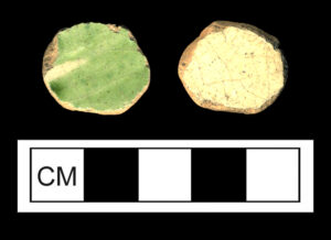Roughly circular disks chipped from larger pieces of European and Native American pottery are common at St. Augustine and other Spanish colonial sites. These are believed to have been most commonly used as counters in various games, such as backgammon and checkers.